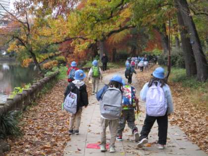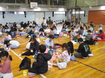 お弁当やおやつは、体育館で食べました。ちょっぴり特別感があり、子供たちはうれしそう。館内は暖房も効いていて、体も温まりました。1・2年生の温かい交流にもなり、絆が深まりました。 遠足(1・2年生 石神井公園)その1