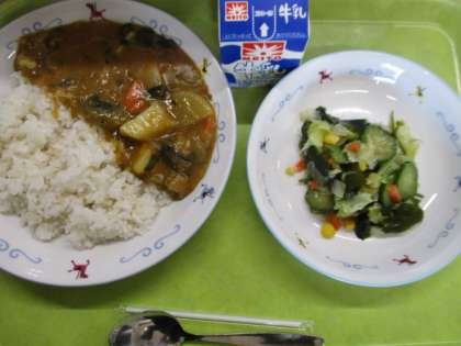 ・海藻サラダ ・牛乳 冬野菜には、大根・人参など根菜類が多いのが特徴です。今日のカレーには、人参・じゃがいも・玉ねぎの他に、大根とほうれん草が入っています。冬野菜は糖分を多く含むため、食べたときに甘く感じます。また、ビタミンCやビタミンE、カロテンという栄養を含むものが多いので、風邪を予防します。冬の野菜をしっかりと食べて、寒い日々でも体調を整えていきましょう。 11月28日(金) 今日の給食