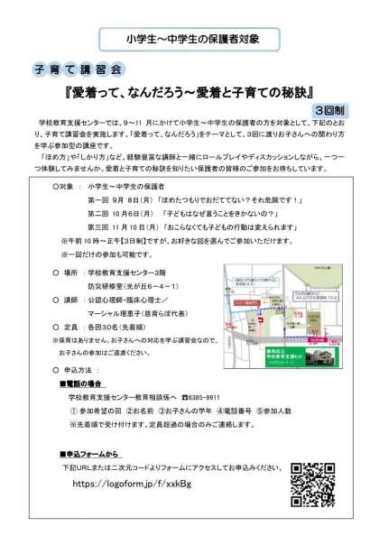 <swa:ContentLink type="doc" item="103291">子育て講習会『愛着って、なんだろう〜愛着と子育ての秘訣』</swa:ContentLink>
