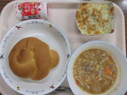 パンプキンパン、マカロニグラタン、ミネストローネ、 ジョア(ストロベリー) ※『マカロニ』と「パスタ」の違いは? 「パスタ」は小麦粉と水を練り合わせて作られた麺類全般の総称で、 「マカロニ」はその中のショートパスタの一種。 スパゲッティのようなロングパスタと区別される「ショートパスタ」 の代表的な形の一つで、日本農林水産省の定義では、2.5mm以上の 大きさで管状、または棒状・帯状以外に成形されたものを「マカロニ」 と定めています。 11月7日(金)給食