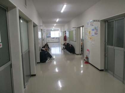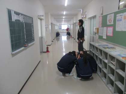 11月10日(月)の昼休憩時間中に、地震が発生したとの想定で避難訓練を行いました。今回は初動避難(安全の確認)の確認・実施のため、校外への避難は行わないこととしました。