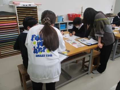 11月11日(火)、日本大学藝術学部美術学科・デザイン学科の先生及び学生に参加・協力いただき、D組との交流授業を行いました。