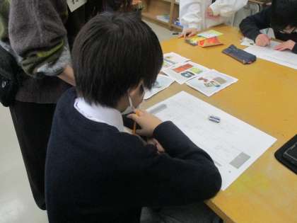 今回は「無作為に選んだ3〜4枚の絵を組み合わせ、オリジナルの物語を作る」という内容で、協力して一つの作品を創造する喜びを味わうと共に、美術面での能力向上を図ることを目的に実施しました。