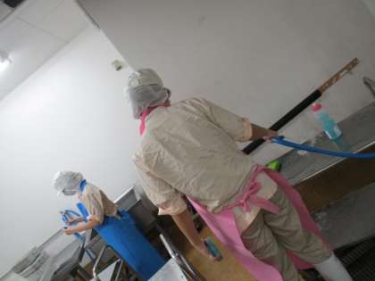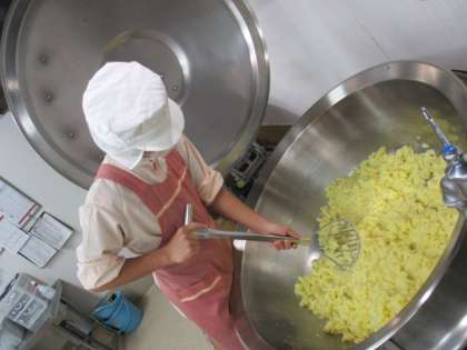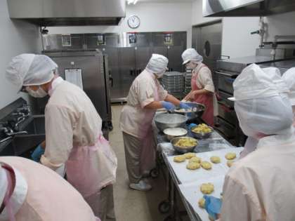 蒸しパンの生地の分注、模様作り、すいとん作り、ピラフを混ぜる、洗い物など昨日よりも色々なことをしました。
