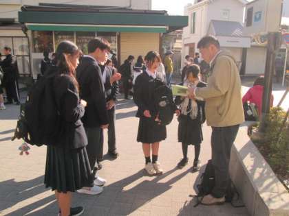 はじめはなかなか声をかけにくそうでしたが、勇気をもって話しかけると、外国人の方は親切に答えてくれました。