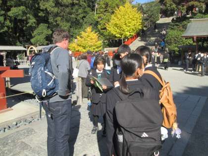 鎌倉にも外国人の方が、たくさん来ていました。そこで、今回の校外学習では、外国人に英語でインタビューすることが課題になっています。