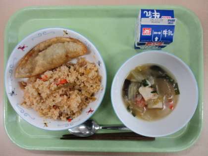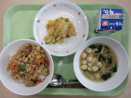 今日は油麩を卵とじにした「油麩丼」にして給食に出しました。油麩丼は登米市にある旅館の女将さんが考えたメニューだそうです。