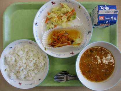 3.カレーライス、牛乳、サラダのセットで出すこと
