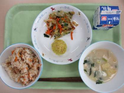 修学旅行 座禅体験![]() ![]() ![]() ![]() ![]() ![]() 班別行動の後は、建仁寺で座禅体験をしました。真剣に集中して参加して、立派な態度でした。 修学旅行 清水寺チェックポイント![]() ![]() ![]() ![]() ![]() ![]() チェックポイントの清水寺では、清水の舞台を見たり、お土産を買ったりして楽しみました。 9/26(金)の給食![]() ![]() 白菜と油揚げのみそ汁 糸寒天のごま酢和え 牛乳 今日は秋の味覚の1つである「さんま」を出しました。ニュースでも取り上げられていますが、今年のさんまは豊漁のようです。 さんまはDHAやEPAという脂が多く、生活習慣病予防につながったり、脳の活性化につながったりします。ほかにも血液の元となる鉄や血液を作る手助けをする葉酸、ビタミンB12といったビタミン類も豊富です。また、さんまははらわたごと食べられる魚です。内臓ごと食べられる人は内臓も食べるとさらに栄養UP!です。 今年は例年より安くておいしいさんまが出回っています。ぜひ、おうちでも食べてください。 〜食材産地〜 米:岩手県産 米粒麦:福井県産 さんま:北海道産か宮城県産のどちらか しょうが:茨城県産 玉ねぎ:北海道産 にんじん:北海道産 白菜:長野県産 小松菜:埼玉県産 もやし:栃木県産 修学旅行 2日目が始まりました![]() ![]() ![]() ![]() 2日目の班別行動が始まりました。清水寺をチェックポイントにして、班ごとに興味がある神社や仏閣を回ります。 修学旅行 東大寺![]() ![]() ![]() ![]() 奈良公園で鹿を見た後、東大寺に行きました。大仏の大きさに圧倒されていました。 修学旅行 薬師寺![]() ![]() ![]() ![]() ![]() ![]() バスで薬師寺に着きました。お坊さんの講話が面白く、しっかり顔を上げて聞いていました。 9/25(木)の給食![]() ![]() トックスープ こんにゃくチャプチェ 牛乳 今日は韓国料理の1つである、チャプチェを作りました。チャプチェは漢字で雑に菜と書きます。色々な具材と春雨を炒めた料理です。 チャプチェは今から400年くらい前に生まれた料理です。その頃は春雨は使わず、炒めた具材に汁をかけて食べていました。今のように春雨が使われるようになったのは100年くらい前のことです。韓国に春雨の工場ができてからチャプチェには春雨が使われるようになりました。ちなみに、日本の春雨とは違って、さつまいもから作られる春雨を使います。この春雨はコシが強いのが特徴です。 給食では春雨ではなく、こんにゃくを使って作りました。雰囲気だけでも味わってほしいと思います。 〜食材産地〜 米:岩手県産 米粒麦:福井県産 豚肉:茨城県産 たまご:栃木県産 玉ねぎ:北海道産 にんじん:北海道産 大豆もやし:栃木県産 えのきたけ:長野県産 りんご:山形県産 しょうが:茨城県産 にんにく:青森県産 ニラ:栃木県産 大根:北海道産 小松菜:埼玉県産 修学旅行 出発しました![]() ![]() ![]() ![]() 定刻通りに新幹線が出発しました。これから、京都駅に向かいます。 9/24(水)の給食 ★奈良県★![]() ![]() ししゃもの利久焼き 飛鳥汁 柿 牛乳 今日も修学旅行献立でした。今日は奈良県の料理と奈良県で有名な食材を出しています。 色ごはんはしょうゆ味の炊き込みごはんです。昔は米が貴重だったので、色々な具を混ぜて炊いたのが始まりと言われています。 飛鳥汁は鶏肉と野菜を牛乳とだしで煮込む飛鳥鍋という料理を汁物にアレンジしたものです。昔は牛乳が高価だったため、ヤギの乳を使っていました。 奈良の果物といえば柿です。正岡子規の俳句にも「柿くへば鐘が鳴るなり法隆寺」という句があります。今日はそんな柿を給食でも出してみました。 少しでも郷土の味を楽しんでもらえると嬉しいです。3年生は明日から修学旅行です。色々なものを食べて、食からも学んできてほしいですね。 〜食材産地〜 米:岩手県産 米粒麦:福井県産 とり肉:宮崎県産 ししゃも:ノルウェー産かアイスランド産のどちらか にんじん:北海道産 ごぼう:青森県産 さやいんげん:群馬県産 じゃがいも:北海道産 玉ねぎ:北海道産 大根:北海道産 小松菜:埼玉県産 柿:和歌山県産 9/22(月)の給食 ★京都府★![]() ![]() ちりめん山椒 衣笠たまご焼き 湯葉のすまし汁 白菜と小松菜の炊いたん 牛乳 3年生が25日から京都と奈良へ修学旅行へ行きます。そのため、2日続けて京都、奈良の料理と出していきます。今日は京都の料理です。 ちりめん山椒はちりめんじゃこを山椒と調味料で煮た料理です。昭和の半ばに京都の料理人が作り、徐々に全国へ広まっていきました。 衣笠たまご焼きは衣笠丼をアレンジした料理です。本来の衣笠丼は油揚げと九条ねぎを使った卵とじの丼ぶりです。名前は京都にある衣笠山からついています。 ほかにも、京都で有名な「湯葉」を使ったすまし汁や炊いたんと呼ばれる煮びたしを作りました。 京都尽くしの献立になっています。ちりめん山椒は苦手な生徒が多いと思っていましたが、意外とみんなよく食べていました。また出してほしいという声もありました。 〜食材産地〜 米:岩手県産 米粒麦:福井県産 たまご:栃木県産 ちり