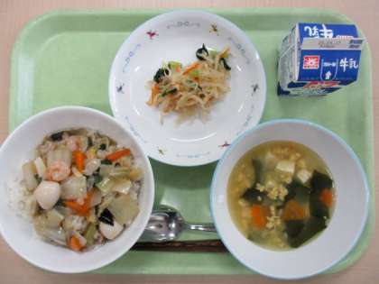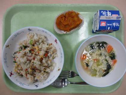 ![]() ![]() 9/17(水)の給食![]() ![]() バジルサラダ 梨 牛乳 梨は今の時期が旬の果物です。形はりんごに似ていますが、梨の方が旬の期間が短いです。 梨は大きく分けると和梨、中国梨、洋梨の3種類に分けられます。日本で梨というと大体は和梨を指します。 梨はみずみずしく、さっぱりと食べられる果物です。食べたときにザラザラした舌ざわりが特徴です。このザラザラは石細胞と呼ばれるものです。日本では人気の梨ですが、英語ではサンドペアー(砂の梨)と呼ばれ、海外ではあまり人気がなかったようです。 〜食材産地〜 米:岩手県産 米粒麦:福井県産 豚肉:茨城県産 大豆:北海道産 しょうが:茨城県産 にんにく:青森県産 玉ねぎ:北海道産 にんじん:北海道産 じゃがいも:北海道産 りんご:青森県産 キャベツ:群馬県産 小松菜:埼玉県産 梨:茨城県産か栃木県産のどちらか 9/16(火)の給食![]() ![]() 牛乳 しいらのネギソースがけ けんちん汁 塩昆布和え しいらは今が旬の魚です。 しいらは暖かい地域に生息する魚で、日本以外でも食べられている魚です。地域によって呼び方も様々で万(まん)作(さく)や金山(かなやま)、南鐐(なんりょう)とも呼ばれています。ハワイではマヒマヒという名前で親しまれているようです。 まぐろやかつおと同じように赤身魚ですが、身の色はピンク色をしています。 しいらは高たんぱく質、低脂質の魚です。また、カルシウムの吸収を助ける「ビタミンD」や正常な赤血球を作る手助けをする「ビタミンB12」が多く含まれています。 〜食材産地〜 米:岩手県産 米粒麦:福井県産 しいら:長崎県他 ねぎ:青森県産 生姜:茨城県産 ごぼう:青森県産 人参:北海道産 大根:青森県産 じゃがいも:北海道産 小松菜:埼玉県産 キャベツ:群馬県産 9/12(金)の給食![]() ![]() わかめスープ 野菜の中華酢和え 牛乳 春雨はサラダやスープによく使われる食材です。今日は和え物に入っています。 大きく分けると緑豆、じゃがいも、さつまいもの3種類から春雨は作られています。緑豆春雨はフェンスー、さつまいもの春雨はタンミョンとも呼ばれています。 春の雨と書いて春雨ですが、この名前は春雨を作る時の様子がしとしとと降る春の雨を思わせることから「春雨」という名前がついたようです。 給食では国産であるじゃがいもから作られる春雨を使っています。ぜひ食べてください。 〜食材産地〜 米:岩手県産 米粒麦:福井県産 豚肉:茨城県産 えび:インドネシア産かベトナム産のどちらか いか:ペルー産 たまご:栃木県産 うずら卵:愛知県産 しょうが:茨城県産 にんにく:青森県産 にんじん:北海道産 玉ねぎ:北海道産 白菜:長野県産 ちんげん菜:茨城県産 もやし:栃木県産 小松菜:埼玉県産 9/11(木)の給食![]() ![]() 生揚げのハンバーグ じゃがいもと玉ねぎのみそ汁 ごぼうとれんこんのきんぴら 牛乳 生揚げは豆腐を油で揚げた食材です。日本では室町時代のころにはもう食べられていたようです。この名前は表面には火が通り、茶色くなっていますが、中は生(豆腐)のままということで生揚げと呼ばれるようになりました。地域によっては厚揚げとも呼ばれています。 生揚げは普通の豆腐を水切りしたり、油で揚げたりしているので、水分が少なく、その分、栄養価が高くなっています。 今日は豆腐ハンバーグならぬ、生揚げハンバーグです。みんなよく食べていました。 〜食材産地〜 米:岩手県産 米粒麦:福井県産 豚肉:茨城県産 玉ねぎ:北海道産 大根:北海道産 じゃがいも:北海道産 小松菜:埼玉県産 ごぼう:青森県産 れんこん:茨城県産 にんじん:北海道産 9/10(水)の給食![]() ![]() ABCスープ スイートパンプキン 牛乳 今日はスイートポテトならぬ、スイートパンプキンです。100%かぼちゃというわけではなく、さつまいもも入っています。 かぼちゃの収穫時期は夏ですが、かぼちゃは追熟させることで甘みが増します。なので今の時期くらいからは甘いかぼちゃになっていきます。しかもかぼちゃは緑黄色野菜なので栄養も満点です。 おいしく食べられて、栄養満点なんて最高ですね。ぜひ食べてください。 〜食材産地〜 米:岩手県産 米粒麦:福井県産 とり肉:宮崎県産 たまご:栃木県産 玉ねぎ:北海道産 にんじん:北海道産 小松菜:埼玉県産 じゃがいも:北海道産 キャベツ:群馬県産 かぼちゃ:北海道産 さつまいも:千葉県産 生徒会選挙が行われました