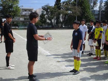 それぞれ考えたことを発表し、活発な話し合いを行っていました。 ※以前の写真が異なった学年のものでしたので、3年生のものに差し替えました。 サッカー部新人戦 大会報告