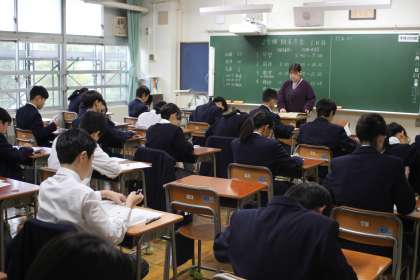 右の写真は、ゴミの分別についての案内です。しっかりと分別に取り組んでいることが分かります。表示されている言語は、ダンボールのところでは、上から英語、中国語、ベトナム語、フィリピン語、インドネシア語です。日本語を入れると6言語です。 2学期末考査が始まりました