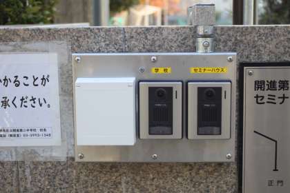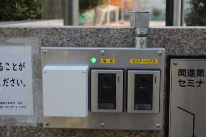 写真右が解錠している状態で緑のランプが点いています。写真左が施錠している状態でランプが消えています。セミナーハウス側も同様です。 施錠・解錠が視覚的にも分かるようになりました。 11月17日の生徒朝会