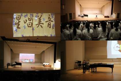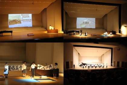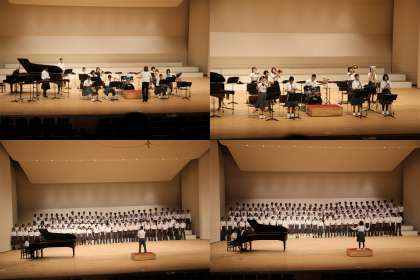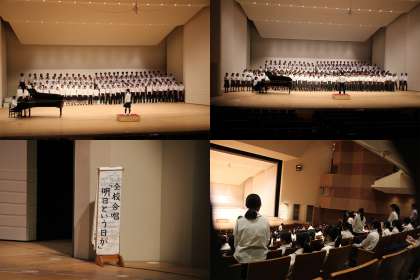 午後の部は、各学年による合唱発表でした。1学年、2学年、3学年の順で披露され、学年が上がるにつれて歌声の迫力と表現力が増していく様子が印象的でした。最後の全校合唱では、全校生徒がステージに上がり、練馬文化センターならではの広い舞台いっぱいに歌声を響かせました。約400名による合唱は圧巻で、会場全体が感動に包まれました。