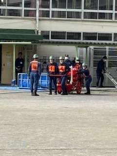 煙体験、消火体験、AED操作体験、起震車体験、白バイ試乗、ドローン紹介、耐震センサーの紹介、水圧体験、焚き出しアルファ米配布、など様々な訓練が行われました。ねり丸も来てくれて小さいお子さんに囲まれていました。 田柄各町会の消防団による消火訓練や光が丘第4分団による消火操法訓練デモンストレーションも行われました。地域の災害時に活躍してくださる方々です。 中学生の皆さんも将来、ぜひ入団してほしいと思います。