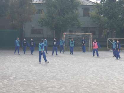 体育の授業中です。この時期はサッカーに取り組んでいました。パスを受けるためにスペースに走り込んだり、ドリブルをしたりと上達しているのが分かります。