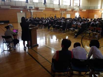 発表を聞く生徒たちの様子も協力的でよかったです。講評ではお褒めの言葉をいただきました。