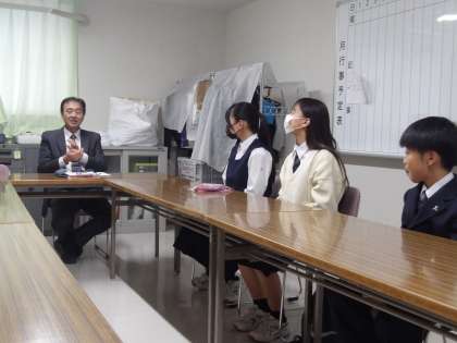 生徒会本部役員の生徒たちが今行っていることや聞いてみたいことなどを話します。今回は校長からの質問が多かったです。新役員はまだ緊張気味でした。