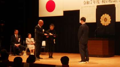 本校生徒が入選し表彰されました。短い言葉で税について考えたことを表現しました。