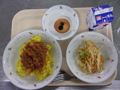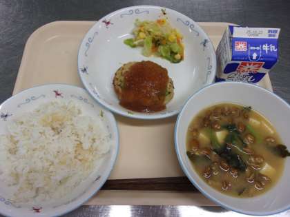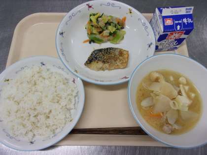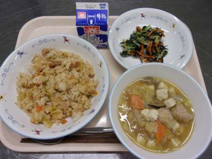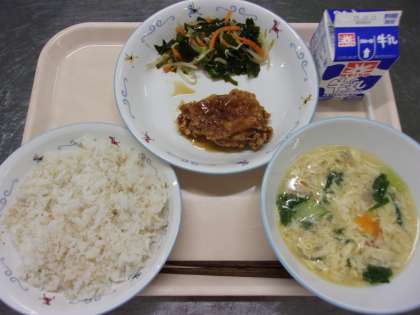 写真上:新生徒会長あいさつ 写真下:認証された新委員長の挨拶と委員会活動報告 ![]() ![]() ![]() ![]() 10月18日(土)の給食![]() ![]() ・ツナサラダ ・ミックスフルーツゼリー ・ジョア 合唱コンクールでした。 市販のルウやデミグラスソースなどは使わず、 じっくり炒めた玉ねぎやお肉のうまみ、トマトのうまみで コクのある美味しいソースに仕上がりました。 10月17日(金)の給食![]() ![]() ![]() ![]() ・生揚げバーグ ・ハニーマスタードサラダ ・なめこのみそ汁 ・牛乳 新メニューの生揚げバーグです。 挽肉と細かくペースト状にした生揚げ(厚揚げ)を合わせて ハンバーグのタネにしました。 中にはひじきや枝豆、レンコンなども入れ、栄養価の高い ボリュームのあるハンバーグになりました。 ご家庭でもハンバーグを作る際にぜひ生揚げも入れてみてください。 調理法に迷う生揚げも、ハンバーグに入れると食べやすく、 カルシウムや鉄分もしっかり摂れ、栄養価がアップします。 サラダは、ドレッシングにはちみつを使い、明日の合唱コンにむけ のどをいたわるメニューにしました。 10月16日(木)の給食![]() ![]() ・小松菜とひじきのナムル ・肉団子入り白菜スープ ・牛乳 キムチチャーハンは混ぜごはん系のメニューで一位二位を争う 人気メニューです。 今日もとてもよく食べていました。 ナムルは、ひじきが入っていて、子どもたちの反応が気になりましたが、 にんにくのきいたタレが良かったのか、 いつも通り食べていました。 10月15日(水)の給食![]() ![]() ・油淋鶏(ユーリンチー) ・わかめサラダ ・チンゲン菜としめじの卵スープ ・牛乳 油淋鶏は、揚げた鶏肉の上から、刻んだ生姜やねぎを入れた 甘酸っぱいタレをかけていただく中華料理です。 大人気で残0でした。 10月14日(火)の給食![]() ![]() ・バターチキンカレー ・インド風サラダ ・牛乳 トマトをたっぷり使い、スパイシーさもありながらバターや ヨーグルトでまろやかに仕上げたバターチキンカレーを作りました。 いつものカレーライスとは違い、ナンにつけながら食べるスタイルで 楽しみました。 インド風のサラダは、ドレッシングにパプリカやチリパウダーを入れ インドカレー屋さんで食べるような味のサラダに仕上げました。 10月10日(金)の給食![]() ![]() ![]() ![]() ・サウピカンサラダ ・米粉のブルーベリーケーキ ・牛乳 今日のケーキは、バターや卵、小麦粉を使わず、 米粉とサラダ油、豆乳などで作ったアレルゲンフリーのケーキです。 卵やバターが入っていないため、生地が白っぽい色をしています。 米粉を使用しているので、小麦粉で作ったケーキとはひと味違い もちもちっとした食感が楽しめました。 10月9日(木)の給食![]() ![]() ・鯖の一味焼き ・みぞれ和え ・豚汁 ・牛乳 みぞれ和えとは、大根おろしと他の食材をタレで和える料理です。 給食では、果物以外の食材は加熱する必要があるため 大根おろしと調味料を合わせて加熱して、大根おろしのタレを作り、 茹でた野菜と和えて提供しています。 10月18日(土)海外派遣を経験した生徒が報告会を行いました
