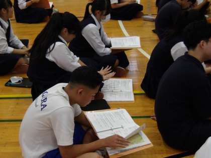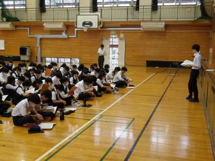 司会役の生徒の声掛けで出発式が始まりました。実行委員長の挨拶や今回の修学旅行でお世話になる方々が紹介されました。おやつが配られ、新幹線フォームへの移動を待っています。 ![]() ![]() ![]() ![]() ![]() ![]() 10月1日(水)修学旅行事前指導
