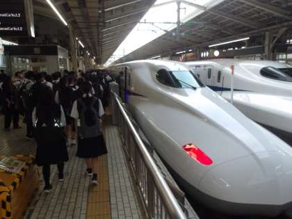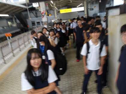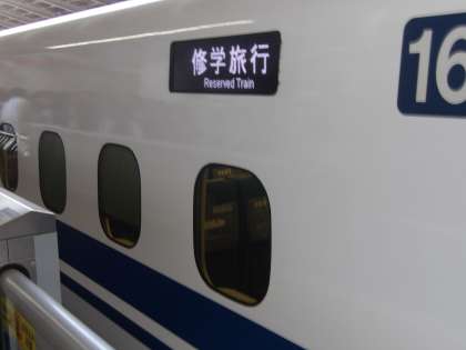 新幹線のフォームに移動し、新幹線到着まで20分ほど待ちました。そして修学旅行団体列車に乗り込みました。