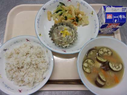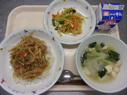 声楽を学ぶ大学生の方です。口を大きく開けるコツなど、実際に声を出しながら教えてくださいました。1年生でしたがどんどん合唱がよくなりました。 ![]() ![]() ![]() ![]() ![]() ![]() 9月10日(水)の給食![]() ![]() ・大豆もやしのナムル ・冬瓜のスープ ・牛乳 ピーマンと細切り肉で作るチンジャオロースを丼にしました。 ピーマンといえば、昔は子どもの嫌いな野菜ランキング上位の 野菜でしたが、今はどうなんでしょうか。 生徒たちはよく食べていました(^^) 9月9日(火)の給食![]() ![]() ![]() ![]() ![]() ![]() ・菊花しゅうまい ・カリカリ油揚げサラダ ・秋なすと厚揚げのみそ汁 ・牛乳 9月9日は重陽の節句です。 重陽の節句は別名「菊の節句」ともいうことから 今日の給食では菊の花を模した菊花しゅうまいを作りました。 菊の花びらはコーンと、細切りにしたシュウマイの皮をまぶすことで 表現しました。 9月8日(月)の給食![]() ![]() ・のりの佃煮 ・肉じゃが ・和風ツナサラダ ・牛乳 給食室で炊いたのりの佃煮はごはんのおともに最高です。 麦ごはんはいつも以上によく食べていました。 9月8日(月)生徒会朝礼はオンライン開催