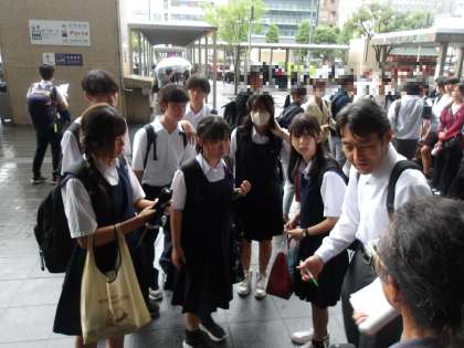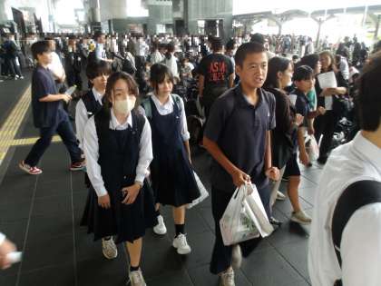 3年生の大きな行事がまた一つ終わります。今回の修学旅行でも様々な学びがありました。班行動ではうまくいったこともいかなかったこともあります。また、楽しいと感じたことやそうではない感情とも向き合った場面もありました。それも含めてよい勉強になりました。 学校ホームページの閲覧数は普段の10倍になりました。閲覧ありがとうございました。 関心をもっていただいたことが分かり、生徒に伝えると、ご家族の愛情を感じていました。よい宿泊学習になりました。疲れて帰宅すると思いますが、お土産話を楽しみにしてください。10月7日(火)に明るく元気な3年生に会えるのを楽しみにしています。 ![]() ![]() ![]() ![]() ![]() ![]() 10月4日(土)修学旅行3日目 新幹線内