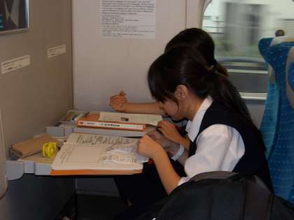 帰りの新幹線内では、しおりの記入や会計処理をしました。その後自由時間となり、それぞれに時間を過ごしました。