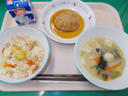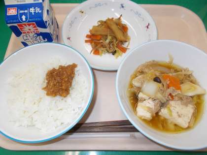本校の保護者のみならず、地域の皆様もぜひご参観ください! 1 西側にある正門から入っていただき、右側に広がる校庭の方へ ただし、自転車で来校の方は入って左側の体育館そばに駐輪場がございます。 2 校舎の真ん中あたりに1・2年生が使用している昇降口がありますのでそこからお入りください 3 入ると受付があります。無人ですが、ご記名お願いします。 また、時間割が印刷された用紙(下記リンクのもの)をお持ちください。 詳細は、下記リンクをご確認ください。 ↓ リンク ↓ 10月学校公開のお知らせ 10月10日(金)![]() ![]() 牛乳 豆腐のヘルシーバーグ 玉ねぎとお麩の味噌汁 今日の献立の「秋の吹き寄せご飯」に使用している「栗」は秋の味覚の代表として知られています。「栗」は栗のイガイガした固い皮は、実は果肉の一部です。一般的に「栗」の果実の食用部分とされるのは、その内部にある種子部分です。私たちは主に種の部分を食べています。この種子で「栗」は「ナッツの一種」とされます。他のナッツと比べてでんぷん質が多く、脂質が少ないという特徴があり、ビタミンCやビタミンB1、カリウム、食物繊維などが豊富に含まれています。「栗」に含まれるビタミンCはでんぷんに守られているため、加熱しても壊れにくいとされています。疲労回復や風邪予防、腸内環境の改善などに効果が期待できます。 一般的には8月中旬頃から収穫が始まり、9月から10月にかけて旬を迎えます 10月9日(木)![]() ![]() 牛乳 銀さわらの黄金焼き 野菜のじゃこ炒め のっぺい汁 「のっぺい汁」とは、里芋やごぼうなどの根菜、鶏肉、豆腐など具材がたっぷり入った、とろみのある汁物です。でん粉や葛粉でとろみをつけるのが特徴で、全国各地に伝わる郷土料理です。地域や家庭によって具材や味付け、食べ方は異なり、年間行事や冠婚葬祭などにも提供される大切な料理です。昆布や干ししいたけ、鶏ガラなどでとっただし汁を使い、醤油や酒、みりんなどで味を調えるのが一般的です。 「のっぺい」という名前の由来は、諸説あります。汁が粘って餅のように見える様子から「濃餅」に由来する説や、汁がねばっていることを意味する「ぬっぺい」が訛ったという説や奈良の寺院の僧侶の宿泊場所や参拝者の休息所で、残り物の野菜を煮込み、葛粉でとろみをつけた汁物から生まれたとも言われています。 10月8日(水)![]() ![]() 牛乳 豆腐チゲ 炒めチャプチェ 「チャプチェ」は伝統的な韓国料理のひとつです。一般的な家庭料理であり、韓国ではなじみ深い料理といえます。本来は宮廷料理でご馳走でしたが、一般家庭に広まり、お祝いなどのおめでたい席や、家族が集まるときなどにも食べられています。春雨のほか、ピーマン、にんじん、赤パプリカなど彩り豊かな野菜やきのこ、牛肉や豚肉の細切りなど、さまざまな具材をそれぞれ炒めてから混ぜ合わせます。醤油ベースの優しい甘辛い味付けで、ごま油の香りが食欲をそそります。 本来、「チャプチェ」に使われる春雨は「韓国春雨」といい、日本のものより弾力やコシがあって太めなのが特徴です。日本では「韓国春雨」ではなく「緑豆春雨」が多く使われています。今日の給食の「チャプチェ」も「緑豆春雨」を使っています。 10月7日(火)![]() ![]() 牛乳 鉄火味噌 すき焼き煮 小松菜とさつま揚げのおかか炒め 「鉄火味噌」の「鉄火」というのは、「熱した鉄のように赤い」という意味で、赤味噌を使うことから、この名前が付けられたということです。昔から「保存食」として親しまれ、調理には油が使われ、日持ちがするように工夫されています。細かく刻んだ野菜と大豆を油で炒め、そこへ味噌、砂糖、香辛料などを加えて、水分を飛ばすようにじっくりと炒り混ぜて作られます。地域や作り手によって、根菜の種類や仕上がりの状態がペースト状やふりかけ状などの違いがあります。 愛知県や山梨県、長野県など、各地に郷土料理として伝わっています。地域によって使われる材料や味付けが異なります。 給食では、ペースト状にしました。 10月6日(月)![]() ![]() きつねうどん 牛乳 さつまいものきんぴら 月見団子(みたらし) 今年の「十五夜」は10月6日です。 「十五夜」とは、1年で最も美しいとされている「中秋の名月」を鑑賞しながら、収穫などに感謝をする行事です。もとは中国から伝わった行事で、平安時代の貴族が取り入れた行事でしたが、のちに庶民に広がると、秋の収穫物を供えるようになりました。「十五夜」は芋類の収穫祝いを兼ねているので、別名「芋名月」と言い、月が見えるところに里芋やさつま芋を供え、豊作の象徴であり、魔除けの力があると信じられていたすすきを飾り、収穫の感謝を形にしたお米で作った団子の月見団子をお供えして、月の力を分けてもらい、健康と幸せを得ることができるようにと、願っていました。 給食では「さつまいものきんぴら」や「月見団子」を作りました。秋の実りに感謝をしながら食べましょう。