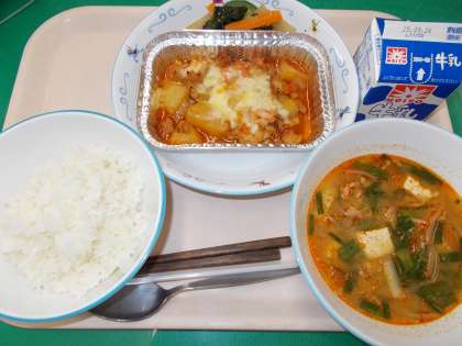 牛乳 トックスープ 人参オレンジ風味ゼリー 韓国のお餅を「トック」と言います。日本のお餅との大きな違いは原料にあります。日本のお餅は「もち米」から作られていますが、トックは「うるち米」から作られています。「うるち米」は、日本では普通のごはん用のお米として扱われております。「日本のお餅」は「もち米」から作られた非常に柔らかい食感で、加熱するとよく伸び溶けやすくなることが特徴です。一方「トック」は、モチモチしているものの「日本のお餅」ほどの粘り気はなく、サックリとかみ切れるような歯ごたえがあり、日本のお団子に近い食感が楽しめます。代表的な「トックスープ」は、野菜や肉を入れて煮込んだ、お雑煮のようなスープです。 9月22日(月)
