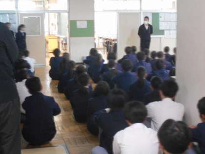 朝2階OP(オープンスペース)において、3年生の学年朝礼が行われていました。これまでの取組について、進路について、これからの話、各クラスからの反省などがありました。11月も終わりに近づきました。それぞれの目標に向かい、健康管理に気をつけしっかり取り組んでください。