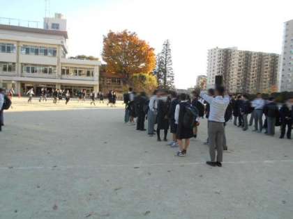 9月の引き取り訓練に続き、2学期2回目の避難訓練です。今回は給食室からの火災を想定し校庭へ避難します。第一避難経路(西階段)を基本としながら、近い階段から避難をします。時間が昼休みということもあり、校庭で遊んでいた生徒もたくさんいました。避難を開始してから完了するまで約5分、前回(4分28秒)と比べてやや時間がかかってますが、想定や時間、避難箇所も違うので、一概に比較できませんが、この時間を短くすることが、みんなの命を救うことにつながります。東京では今年に入ってすでに3,800件の火災が起きているそうです。災害に対する緊張感をもって訓練に臨んでください。お疲れ様でした。
