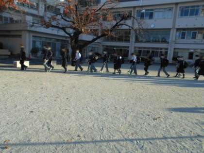 本日15:00、茨城県沖を震源とする震度5弱の地震があったという設定で、避難訓練を行いました。最近では熊本や北海道で地震があり、日本は地震が多い国だと改めて自覚しました。地震が起きたときの避難だけでなく、その後家に安全に帰ることも大切です。そのために、地域ごとに集団で下校をし、あらかじめ決めておいた解散場所まで一緒に行きました。みんな真剣に訓練に取り組んでいました。