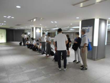 朝7:00、最初の生徒が東京駅到着です。それを皮切りに、続々みんなが集まります。予定より早く集合が完了しました。7:35、予定通り出発式が始まりました。校長先生の話、実行委員長挨拶、添乗員さん・写真屋さんの紹介、諸注意がありました。さい先のよいスタートです。