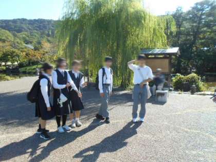 ![]() ![]() ![]() ![]() 修学旅行2日目(10月10日)班行動に出発