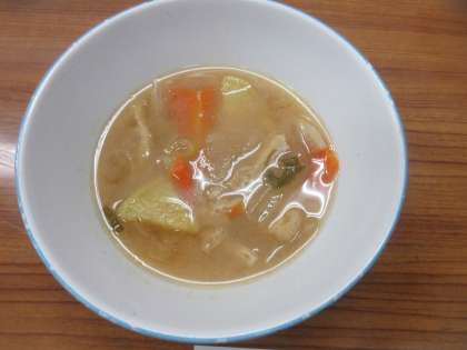 チキンライス、野菜と卵のスープ、白身魚のパン粉焼き、牛乳 今日から1週間完食キャンペーンが始まりました。今日のメインはチキンライスです。鶏肉、ニンジン、玉ねぎなどが入っていて、ケチャップライスになっていて美味しいです。たまごスープにはエノキ、玉ねぎ、青菜、ニンジンなどが入っていてこちらもgoodです。白身の魚はホキとのこと、淡白でパン粉をかけて焼いてあるので、一瞬カツのようです。淡白な分、ライスにもスープにもよく合います。1日目完食です。明日も全部食べたいと思います。