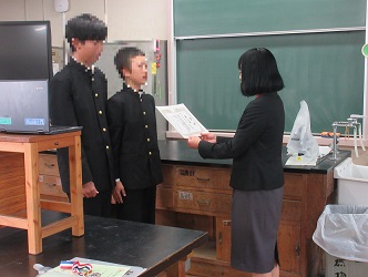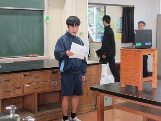 17日(月)朝、生徒会朝礼が行われました。生徒会本部、各委員会から10月の反省と今月の取組について報告が行われ、後期の委員会が始まって本格的な活動が開始されました。給食委員会からは昼食時の牛乳ストローの配布変更についての説明が行われ、保健委員会から感染症の流行にともない、うがい、手洗いなどの予防の徹底が呼びかけられました。どの委員会も積極的に活動を行っています。