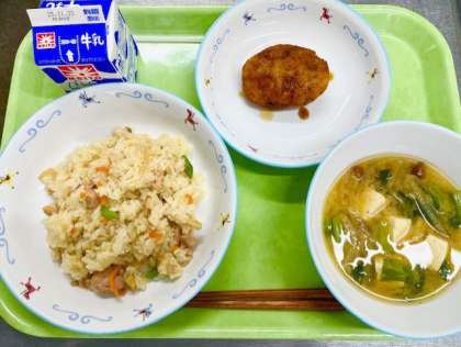 ・麦ご飯 ・八丁味噌豆腐 ・じゃがいものせん切り炒め ・花みかん ・牛乳 10月23日給食
