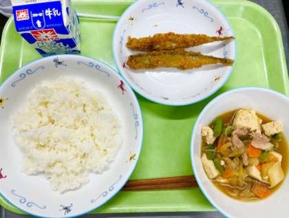 ・ご飯 ・ししゃものカレーフライ ・肉豆腐 ・牛乳 10月29日給食