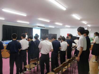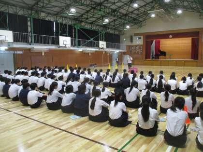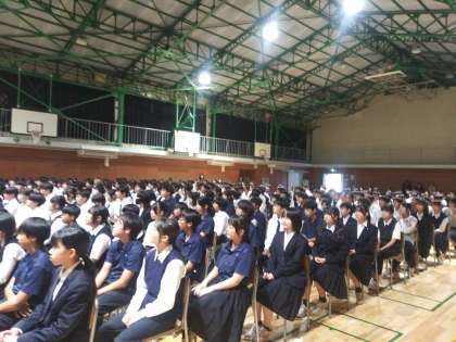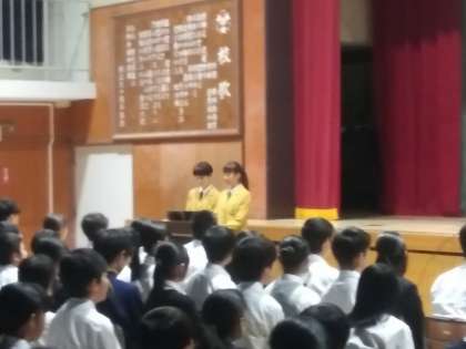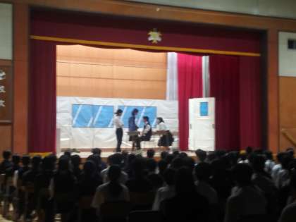 11日、演劇部と海外派遣の発表が行われました。迫真に迫った演技や海外派遣の説明にみんな真剣な姿勢で聞いていました。
