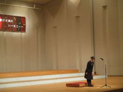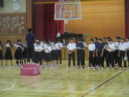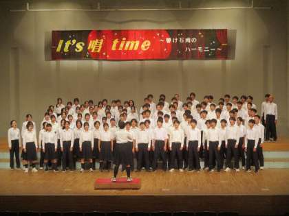 合唱コンクールの締めくくりは有志合唱と吹奏楽部の演奏でした。どちらも石南中の伝統のすばらしさを伝えてくれました。