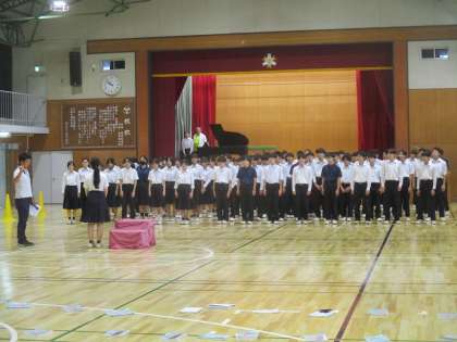 本校の2大行事である合唱コンクールが行われました。実行委員長の挨拶の後、練習に真剣に取り組んだきた各学年の立派な姿が発表されました。