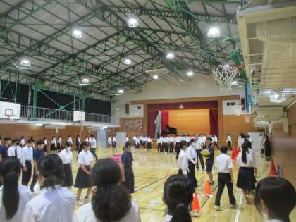 いよいよ10月1日の合唱コンまで10日あまりとなりました。各クラスで朝練や放課後練を工夫して、実行委員を中心に練習に取り組んでいます。今日は各学年で、舞台への入りのリハーサルが行われました。