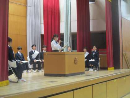 生徒会の新役員を選出する生徒会選挙が行われました。新しい石南中を創っていく選挙でみんな真剣に話を聞き、投票を行っていました。よりよい石南中になっていくことを期待しています。