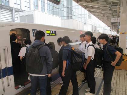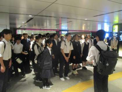 東京駅で出発式が行われ、いよいよ修学旅行が始まります。みんな期待に胸を膨らませ、笑顔でいっぱいでした。