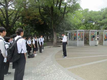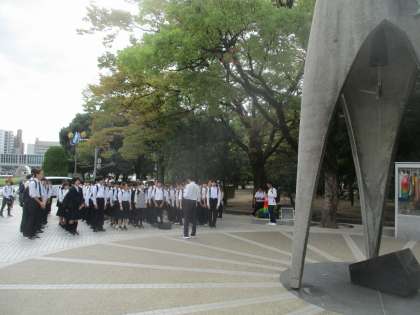 ボランティアガイドとともに平和祈念公園内を見学しています。多くの学びがありました。