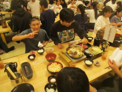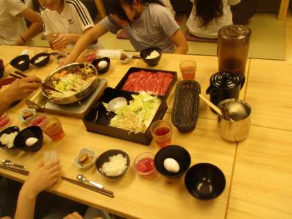 待ちに待った夕食です。おいしいすき焼きをおなか一杯食べました