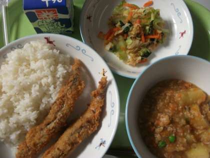 今日は「麦ごはん・キャベツのおかか和え・そぼろ煮・ししゃもフライ」でした。ししゃもフライは色んな料理の仕方があります。みなさんは、どの調理法を知っていますか。 フライか天ぷら、塩焼きか・・・。他にどんなものがあるでしょう。