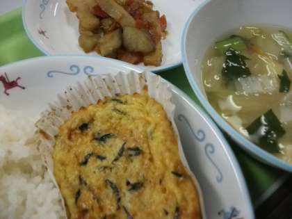 今日は「雑魚と小松菜のチャーハン・じゃがいもと豚肉のピリ辛炒め・肉団子入り中華スープ」でした。ちりめんじゃこは、カタクチイワシを中心に、ウルメイワシやマイワシなどイワシ類の稚魚が使われています。